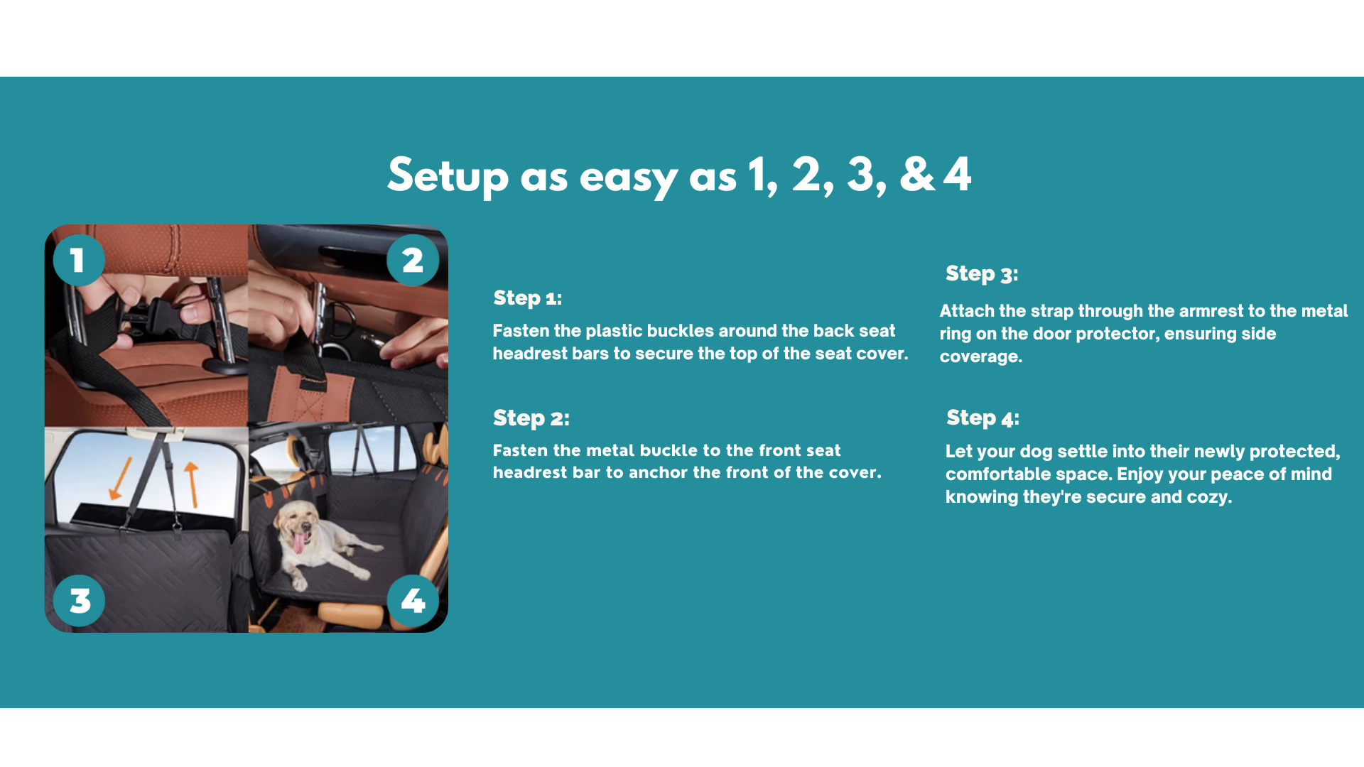 2. Car Protection: Our Hard-Bottom Dog Seat Cover protects your seats from fur, dirt, and scratches, keeping your car clean and damage-free on every ride.